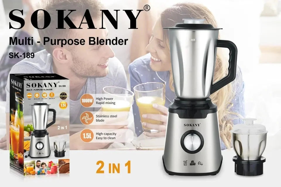 Sokany SK-189 Stainless Steel 2-in-1 Blender – 1000W Motor, 1.5L Jar